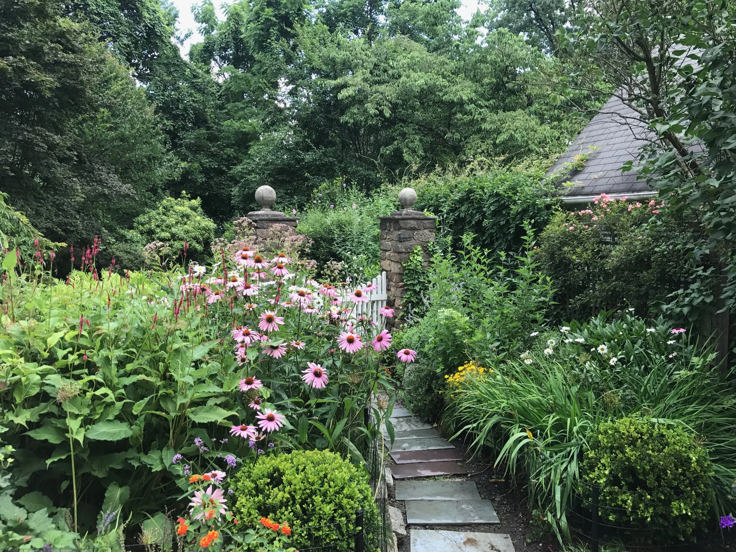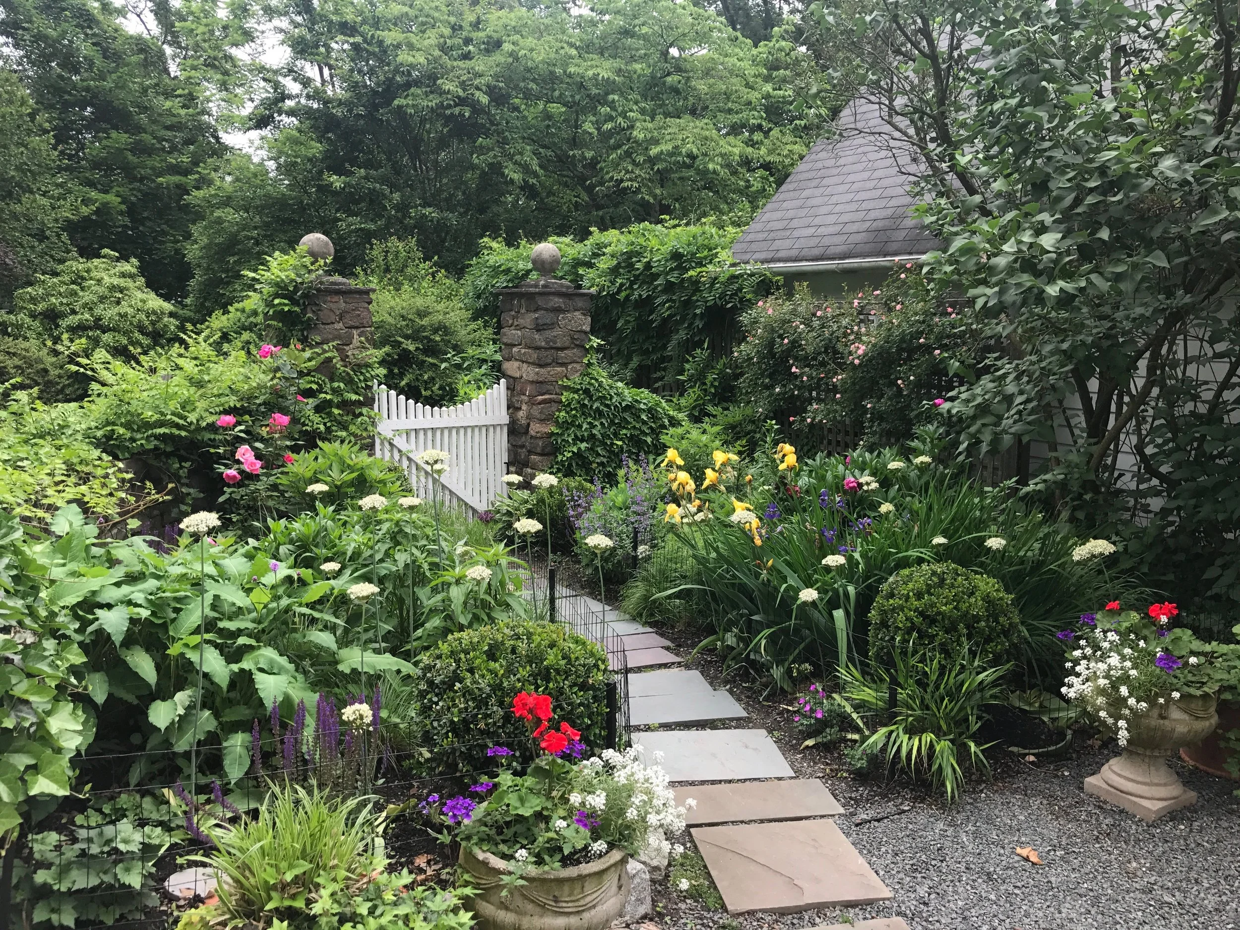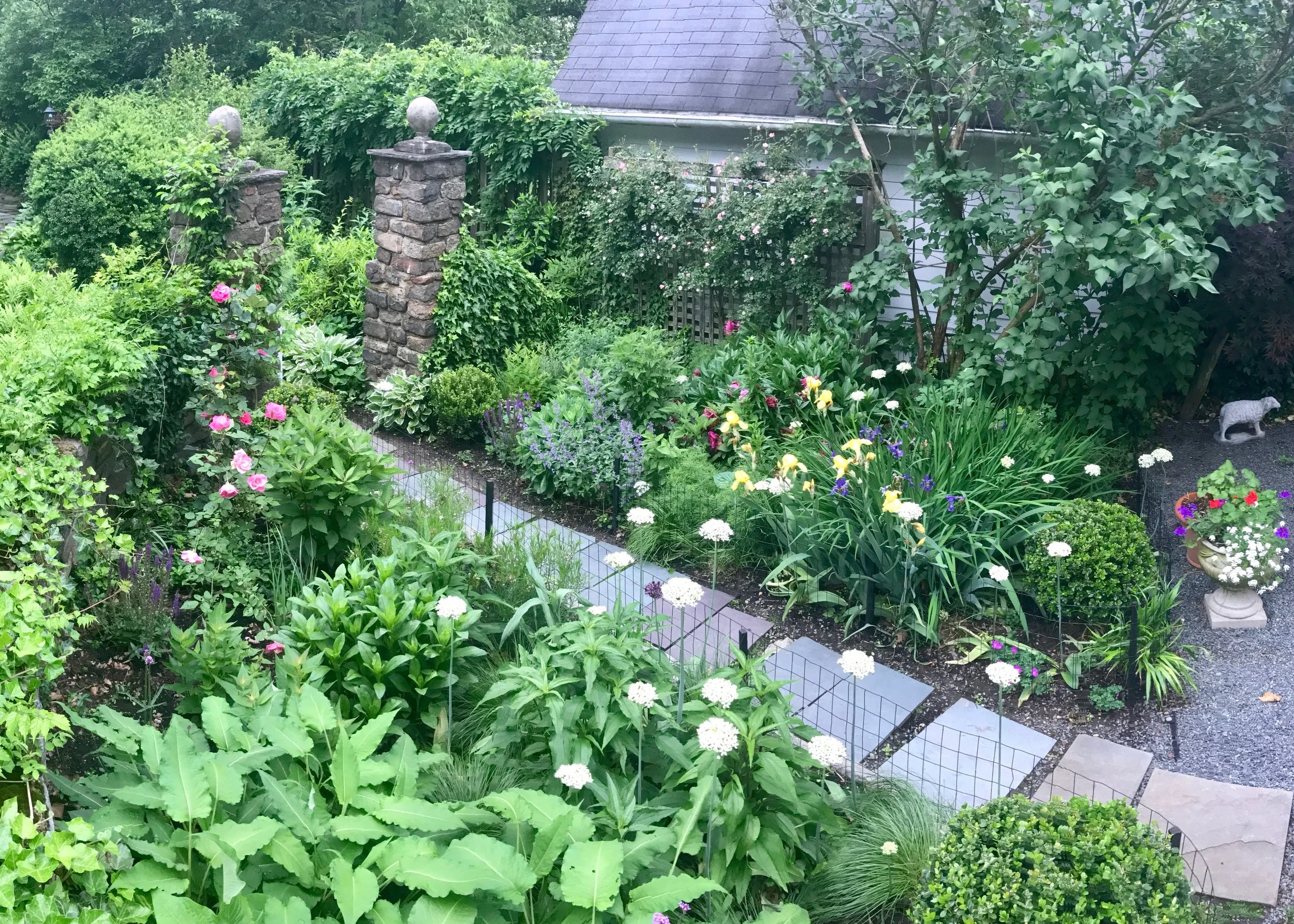 Ryan transformed this barren "dog zone" into the cottage garden the client always wanted. While Ryan's original design included a low boxwood border and traditional English cottage garden plants, he decided opt for a broader plant palette, employing "right plant, right place" principles.