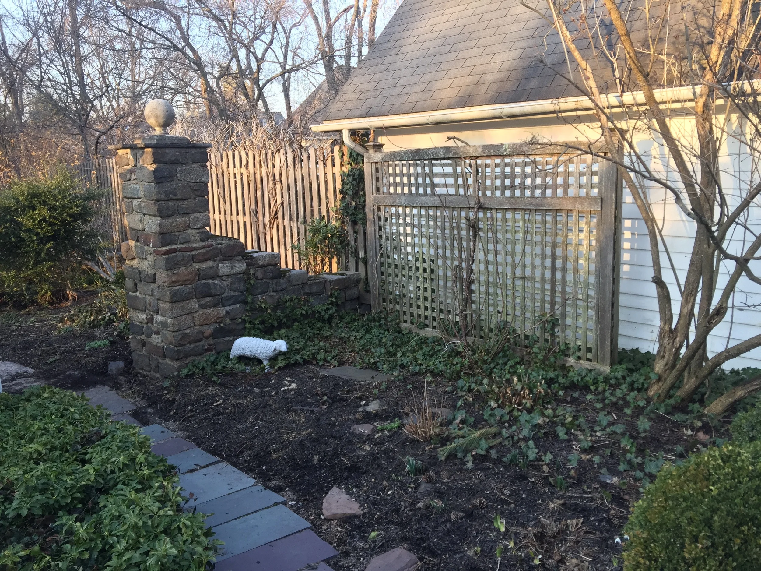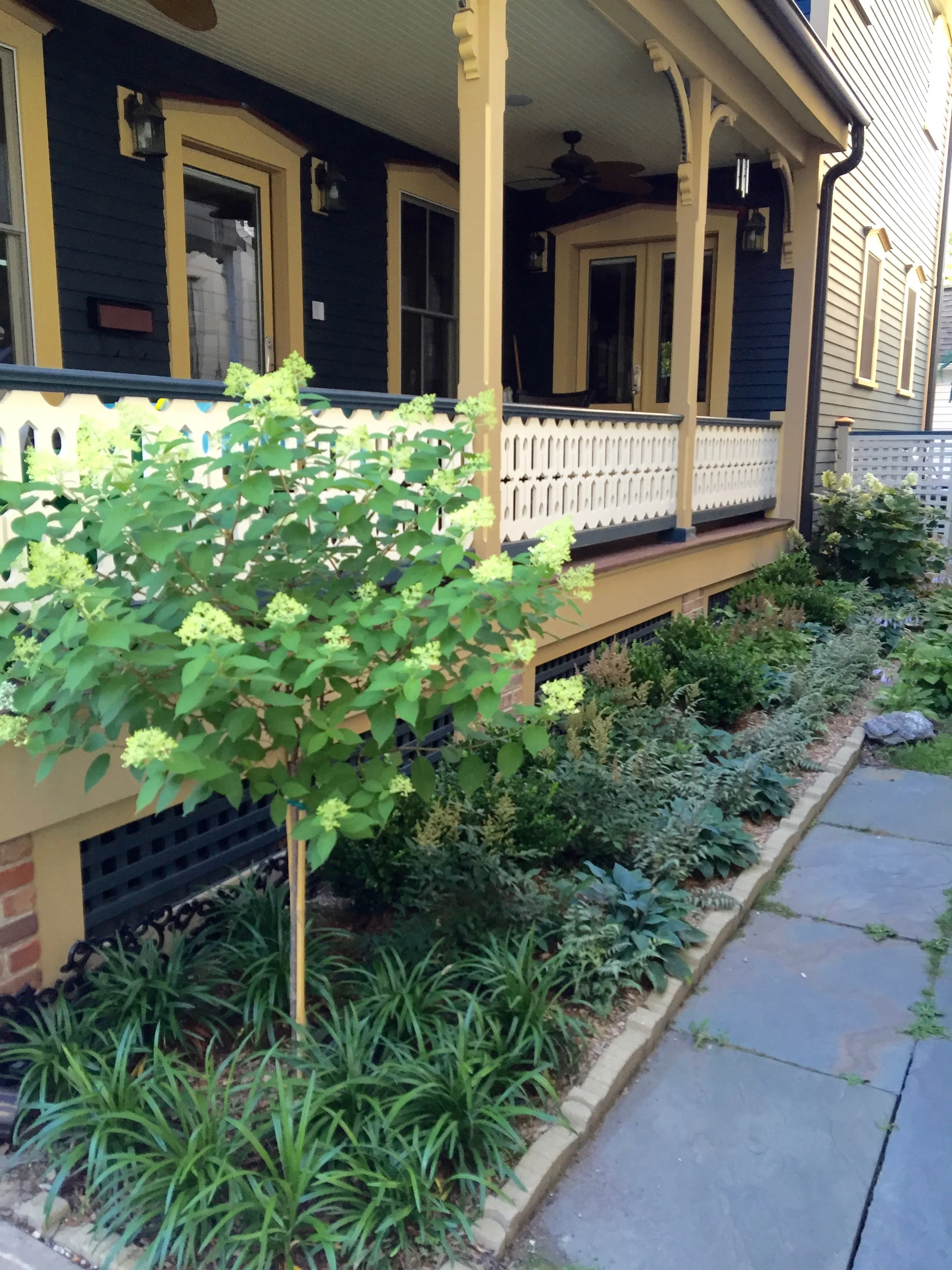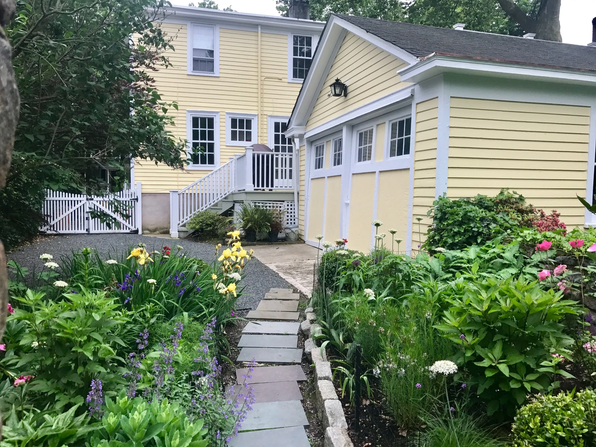 Ryan transformed this barren "dog zone" into the cottage garden the client always wanted. While Ryan's original design included a low boxwood border and traditional English cottage garden plants, he decided opt for a broader plant palette, employing "right plant, right place" principles.